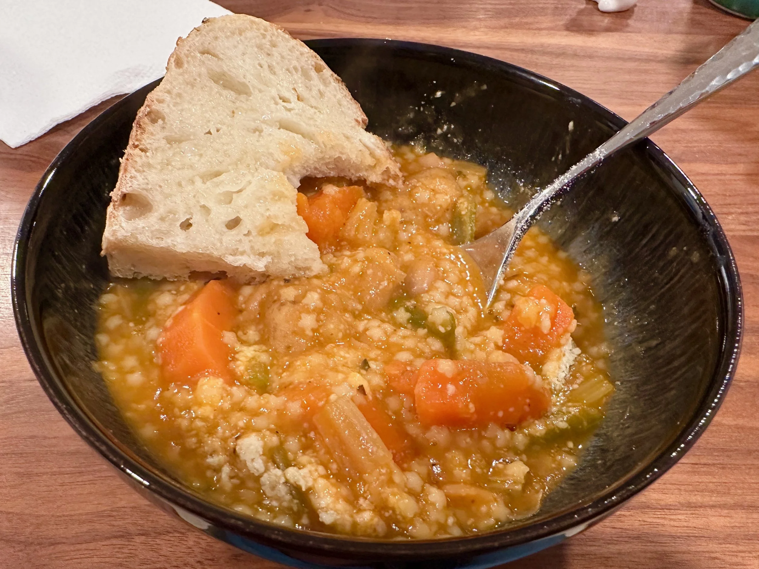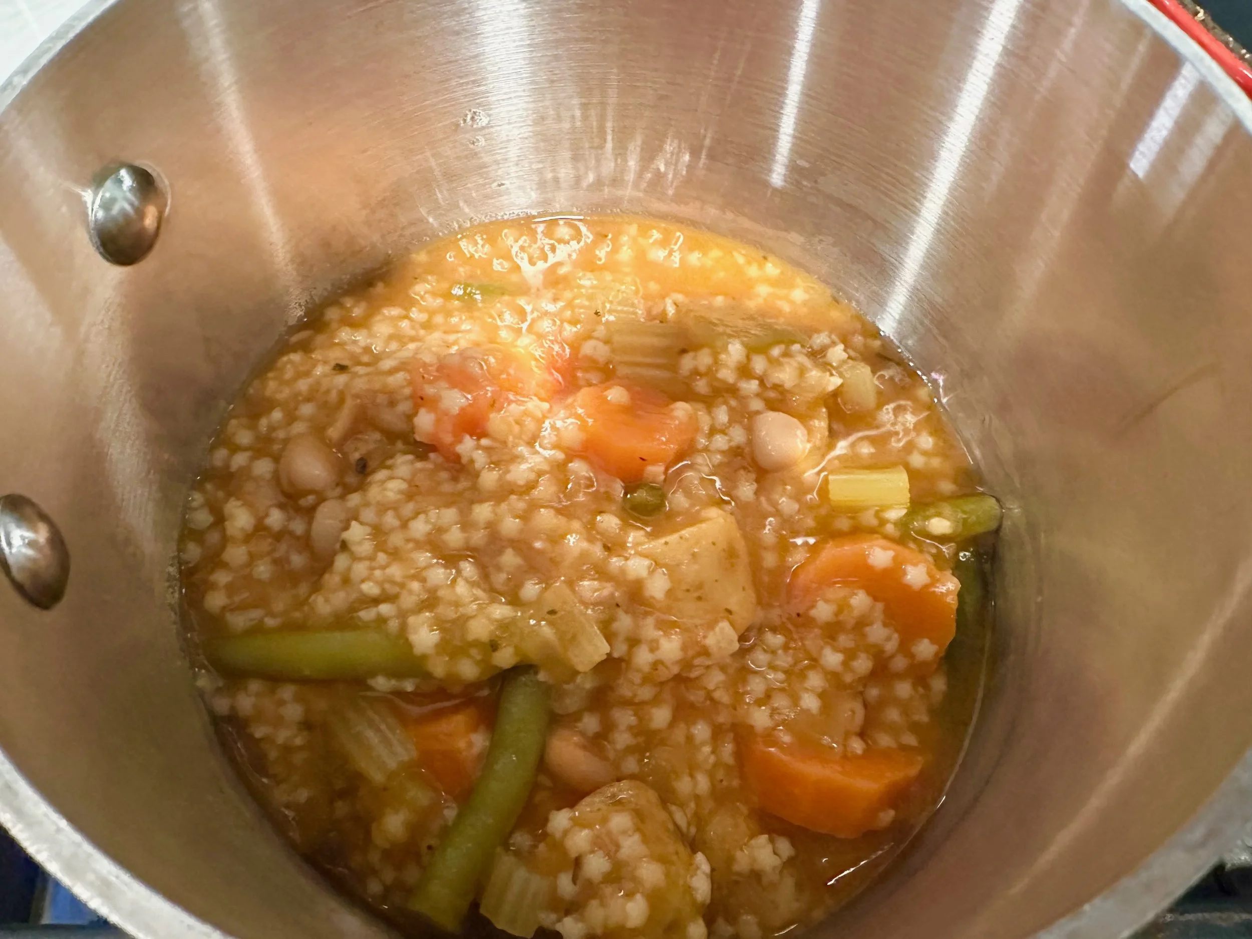 Saute the onion and garlic over medium heat until translucent, then transfer to instapot. Put all ingredients except the pastini into an instapot, and set for 30 minutes. Adjust your preference level of vegetables, to your own taste. When the soup has cooked for 30 minutes (or whenever you can get to it—set it to keep warm so you are not rushed!), release the steam, remove the lid, and add the pastini. Replace the lid and let the pastini cook in the liquid for at least 20-30 minutes.